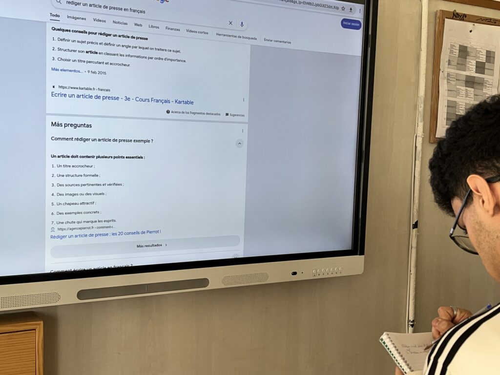 - Artículo en francés para la web del centro y prensa local, elaborado con apoyo del Departamento de Francés.